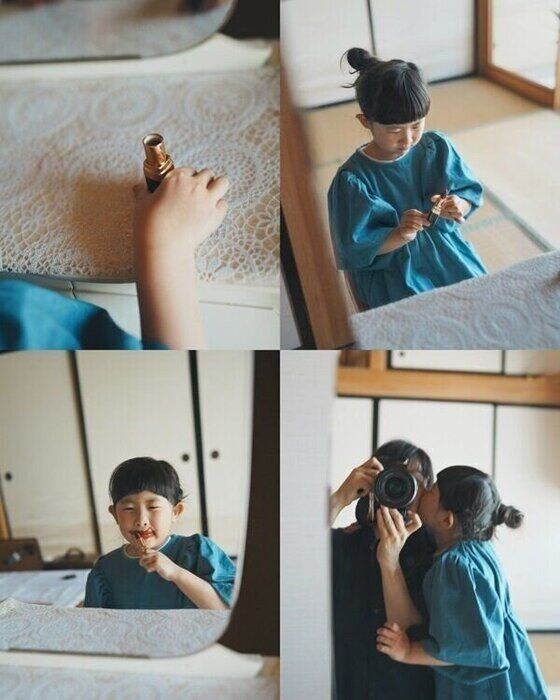 これは、鏡台前で口紅を持った子どもの一連のリアクションを追って撮影したもの。