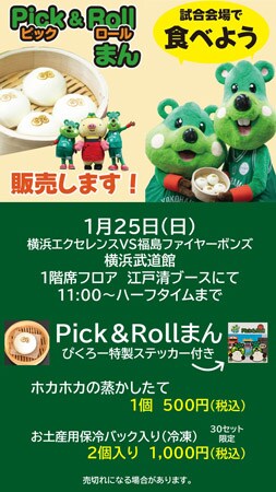 当日は、江戸清とエクセレンスのコラボ商品「Pick&Rollまん(ぴくろー特製ステッカー付き)」が販売される。ホカホカの蒸かしたて「Pick&Rollまん(蒸かし)」1個500円(税込)のほか、30セット限定でお土産用保冷バック入りの「Pick&Rollまん(冷凍)」2個1,000円(税込)も用意されている。支払いは現金またはキャッシュレス(クレカ・交通系IC・PayPayなど)。売り切れになる場合があるので、興味のある人は早めに手に入れよう。