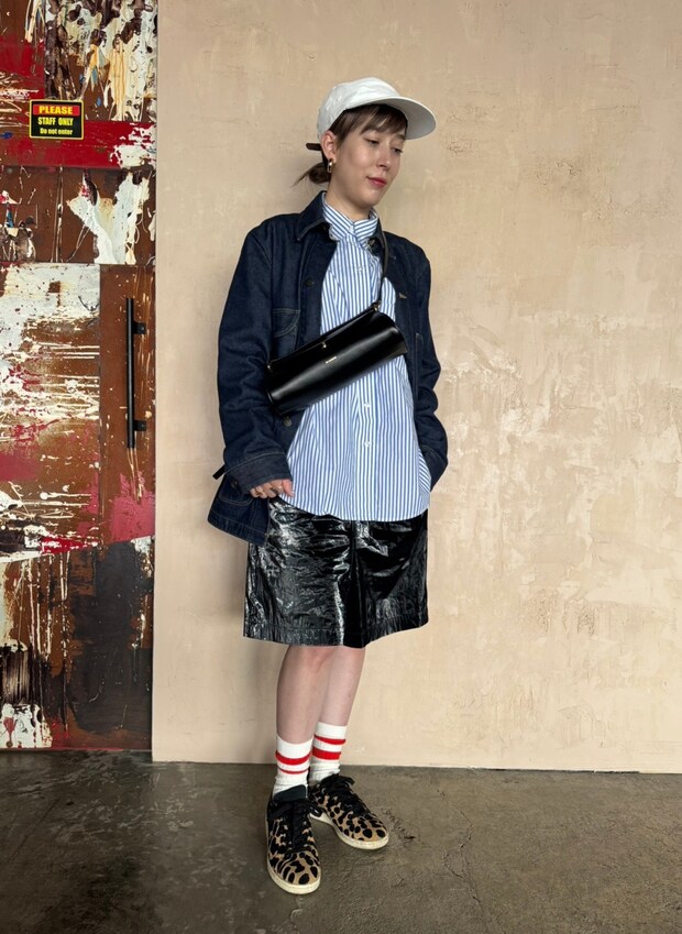 メンズサイズを生かした大人のボーイズスタイル。「レオパード柄シューズやスポーティなキャップでストリートっぽいアクセントを。あえて女性らしいポイントは加えずにとことんメンズライクなスタイリングを楽しんでいます」