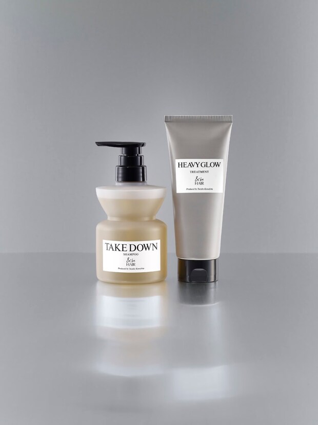 左から:&be テイクダウンシャンプー 400mL ¥1,540、同 ヘビーグロウトリートメント 200g ¥1,540 ※共に4月30日発売