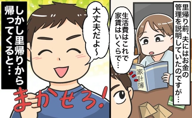 問題は、里帰り中お金の管理ができないだろうと思い、生活費はいくらで、家賃はいくらで、お小遣いはこれだけだよと毎月(3ヶ月間)給料日に伝えていたのですが大丈夫だよーと言っていて、帰ってきたら友人にお金を借りていたことです。