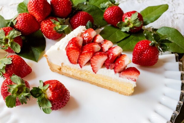 甘酸っぱくジューシーなイチゴとカスタードクリーム、サクサクのパイを組み合わせた。各時期に収穫される新鮮なイチゴをふんだんに使用している。
