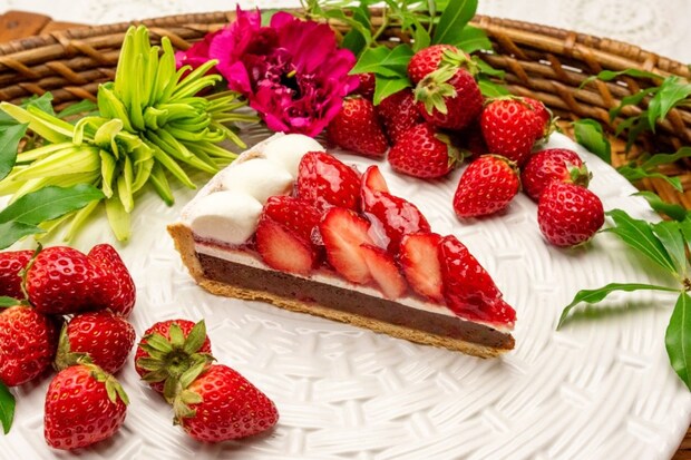 静岡生まれの“きらぴ香”を使用した、イチゴの華やかな香りが楽しめるタルト。サワークリーム入りのカスタードと自家製ジャムを加え、味わいにアクセントをプラスしている。