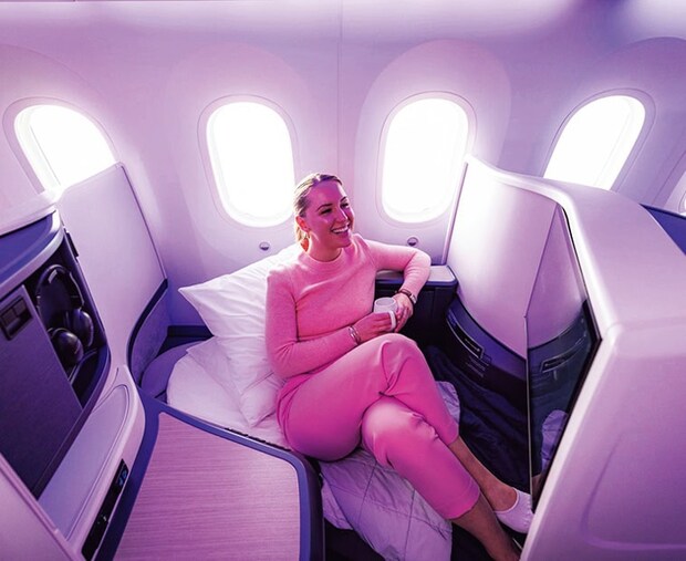 ビジネス・プレミアは座席レイアウトを一新し、上質なフルフラットベッドと洗練された空間デザインを採用。ニュージーランドの食の魅力を凝縮した特別なコース料理と共に、五感で楽しむラグジュアリーな空の旅を楽しむことができます。