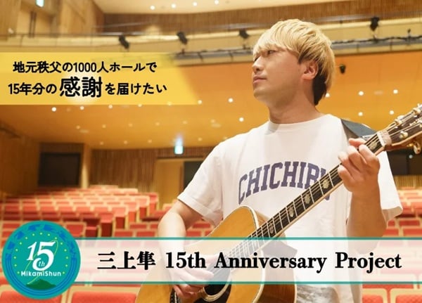 埼玉県秩父市出身のシンガーソングライター三上隼氏は、活動15周年の節目として、11月8日(日)に秩父宮記念市民会館で開催する記念ホールワンマンライブに向け、1月5日(月)、クラウドファンディングプラットフォームのMotionGalleryにてクラウドファンディングを開始した。