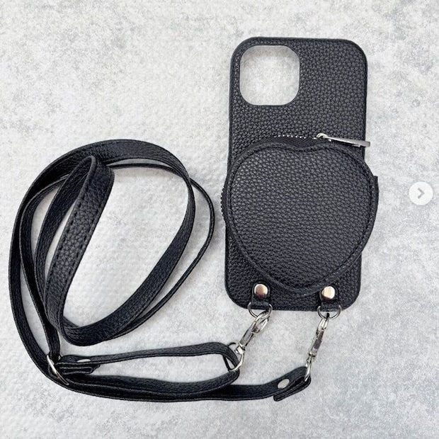 ハートの小物入れが可愛い!ショルダーストラップつきのスマホケース