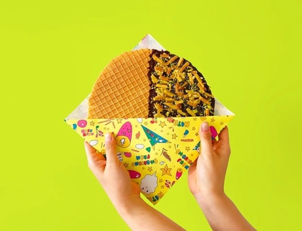 千葉芋屋 芝山農園からは、オランダ発祥の“ストロープワッフル”に千葉県の特産品をぎっしり詰め込んだ「千葉ぎっしりストロープワッフル」が登場。バター香る焼きたて生地に温かいチョコレートがとろける一品だ。