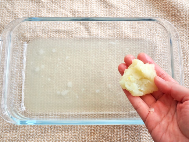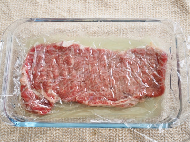 ツナボーイさんの動画では何分漬けておくか言及はありませんでしたが、ラップをかけて30分ほど漬けました。