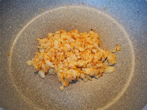 7. 脂身を取り出したら、1、塩、2の果肉を入れ、飴色になるまで炒める。焼いたら器に取り出す。