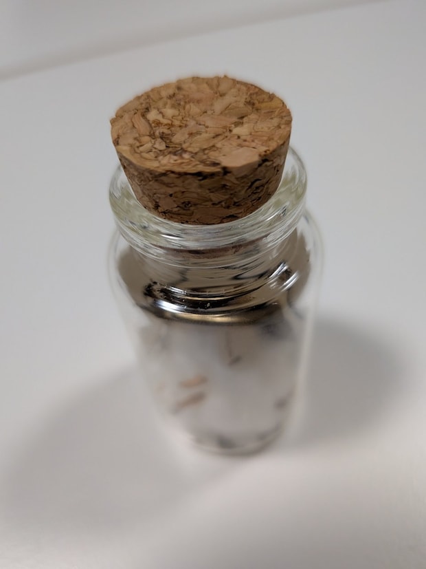まず、妖精さんの住処を整えました。瓶の中に天然の綿を詰めて、妖精さんが入れる小さい巻き貝や、刻み香、妖精さんが願い事を叶えてくれる時に使うアイテムになる天然石、妖精さんが飛んでいくサポートになる羽などを入れて居心地が良い環境にしました。