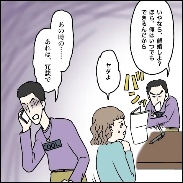 すると、「忘れたの?前にタカシが離婚なんていつでもしてやるって、自分の名前書いて私に投げつけたじゃん」とどこまでも冷静なスズカさんが淡々と話すと、