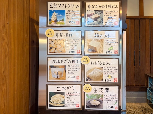 祖父母の代は2種類だったメニューに、平尾さんが新しく開発したものが加わったことで種類が多様になり、大豆の楽しみ方の幅も広がりました。