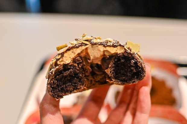 ひと口目からしっとりとした食感のショコラドーナツとともに、濃厚なガナッシュクリームとふわっとした口当たりのプラリネホイップを楽しめます。