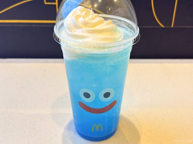 スライムデザインカップに入っている「マックフィズ® 爽やかヨーグルトソーダ味」。スライムらしい鮮やかなブルーで、やさしい甘さのヨーグルトフレーバーと爽やかなソーダがマッチした炭酸飲料です。