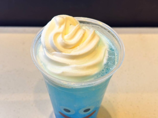 すっきりとした飲み心地で、爽やかさが引き立っていました。スライムのデザインカップも相まって、かわいらしい見た目が目を惹くポイントです。