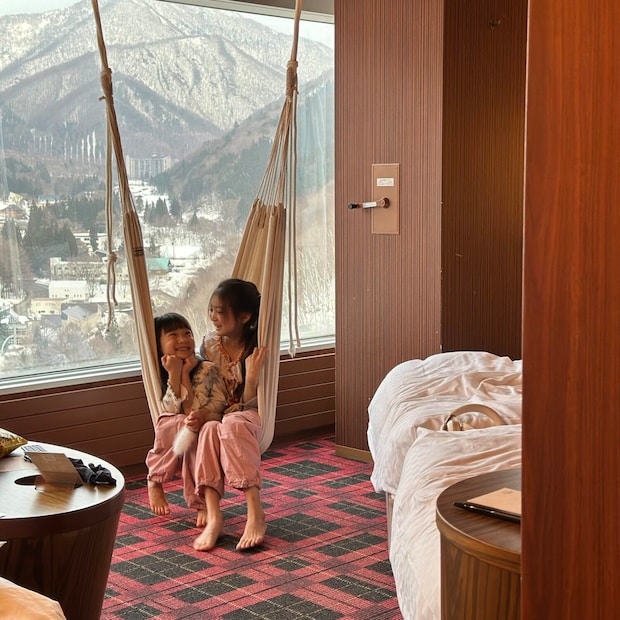 ゲレンデのすぐ目の前にある「苗場プリンスホテル」の館暖らんROOMハンモックは2号館の11〜21階にあるのでお部屋からの眺めも最高◎