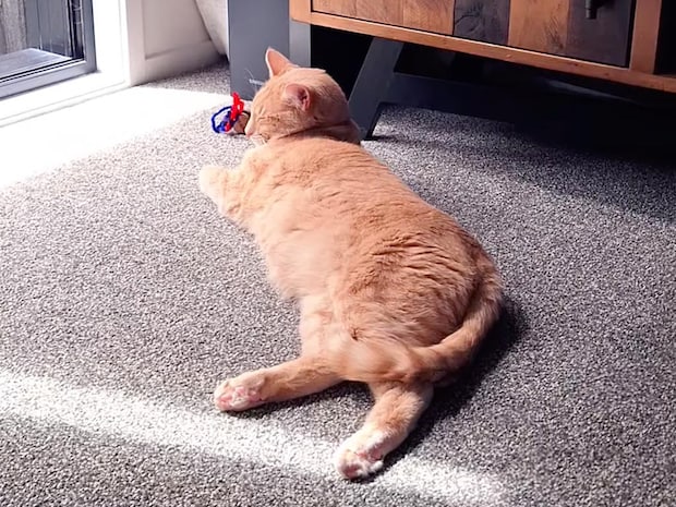 さっきまで遊んでいたおもちゃをそばに置いて、