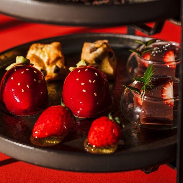 今回の「いちごバレンタインアフタヌーンティー~Rouge et Noir~」は、現在開催中の「いちごアフタヌーンティー~Strawberry Symphony~」をバレンタインらしくアレンジした期間限定のラインナップ。