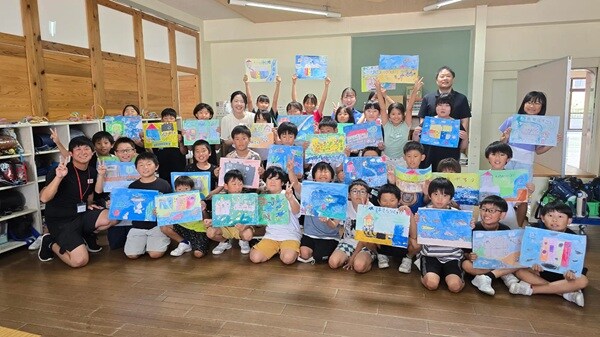 これらのイラストは、ダイキアクシスが昨年、宇和島市へ企業版ふるさと納税として浄化槽を寄付した後に実施された浄化槽学習イベントと工場見学を通じて、子どもたちが学んだことを表現したものだ。