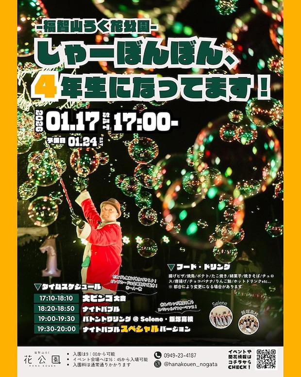 The post 【直方】1月17日(土)、福智山ろく花公園でシャボン玉イベント「しゃーぼんぼん4年生になってます!」が開催されます! first appeared on 筑豊情報マガジンWING.