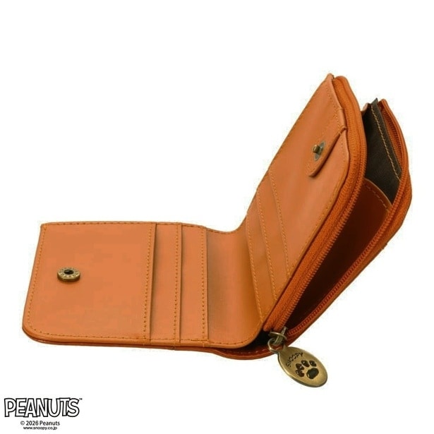 もうひとつのファスナー付きタイプは、PEANUTSの仲間たちが横一列に並んだデザインで、スヌーピーの肉球モチーフのチャームがアクセントになっている。