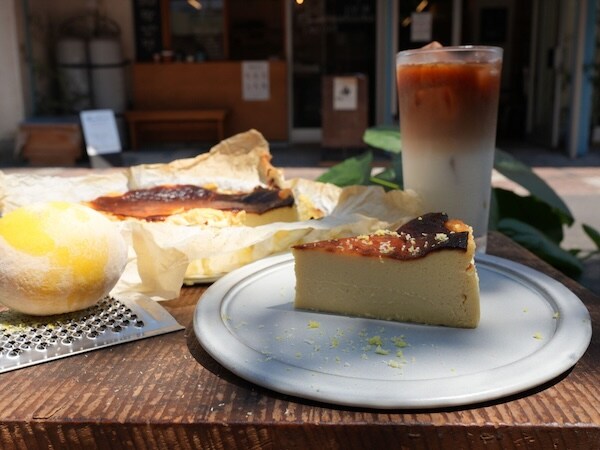 自家製のスイーツはすべて、小麦粉と白砂糖を一切使用していない。高級きび砂糖の「本和香糖」と、鹿沼市の特産であるこんにゃくを練り込んだ「黒胡麻バスクチーズケーキ」などのスイーツに加え、