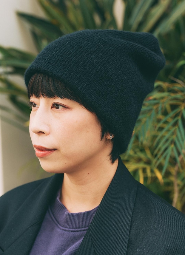 ブラックのニット帽はすっきりとしたシルエットが魅力。ジャケットコーデを程よくカジュアルダウンさせたのがグッド。