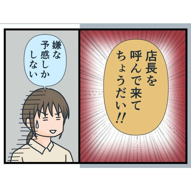 バイトさんから、禁煙席を勧められるも「この席が気に入っている」と断り、挙げ句バイトさんの態度にいちゃもんを付け始め、「店長を読んできてちょうだい!」と言い始めます。