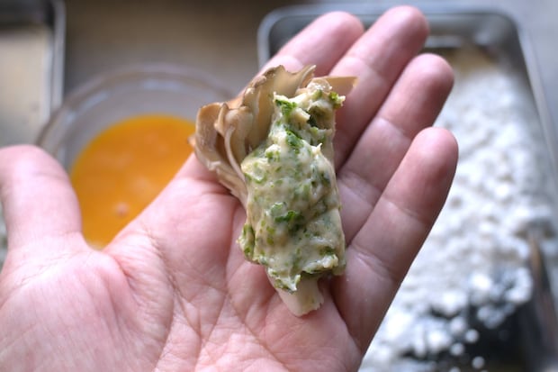 オイスターソースと青のりを加えてよく混ぜ合わせれば特製クリーミーソースのできあがり。常温まで冷ませば固まってくるため、扱いやすくなりますよ。