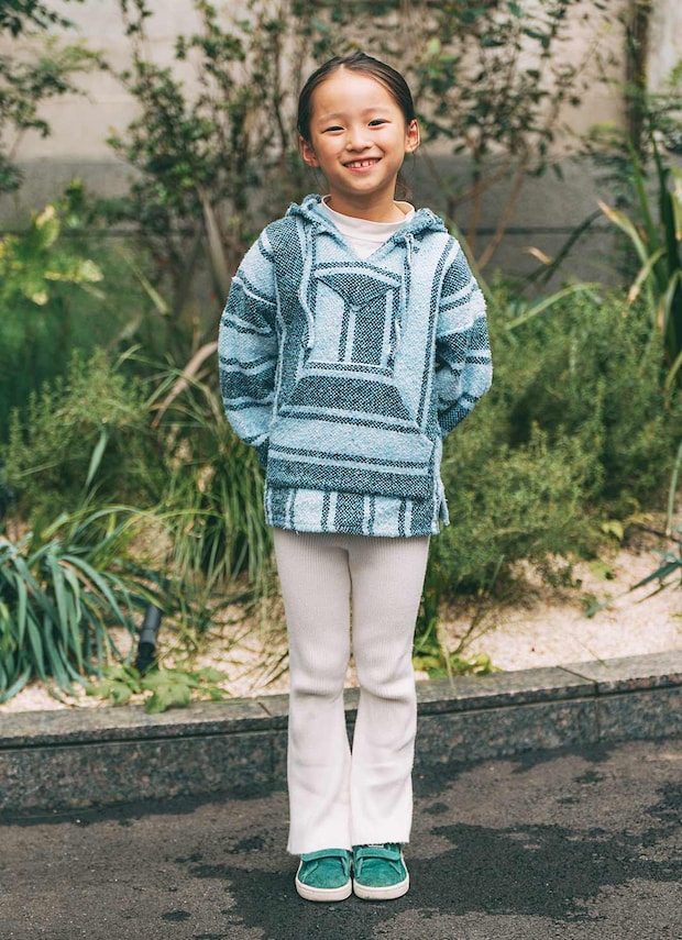 ママはひと癖あるデニムジャケットに今季お気に入りのスェットパンツを投入、一方キッズは爽やかなグリーンのグラデーションコーデにまとめ。ヴィンテージとプチプラをMIXしながら、こなれ感漂う親子コーデの完成!