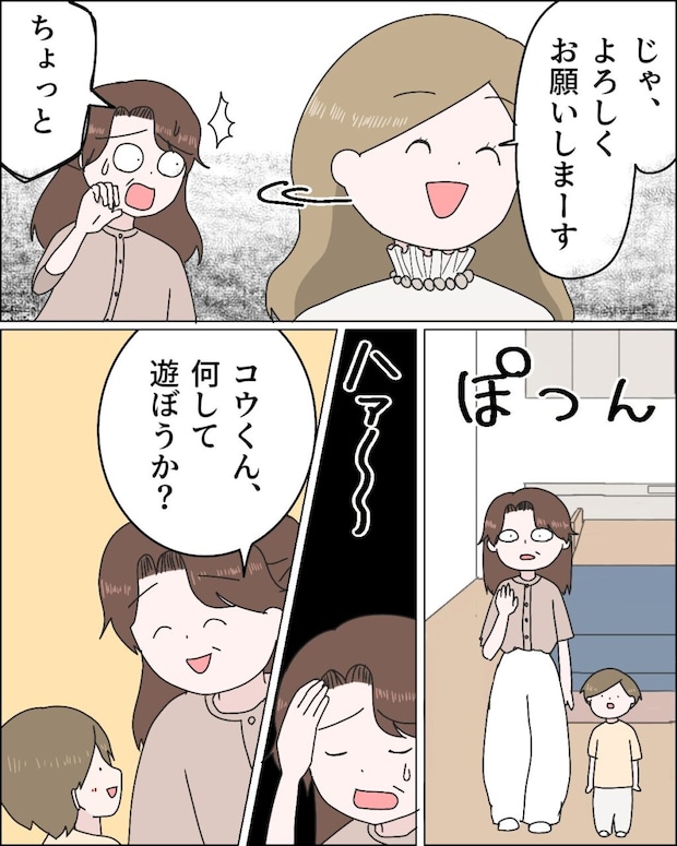 私のことばが聞こえなかったかのように「じゃ、よろしくお願いしまーす」と言って出かけて行ってしまいました。コウくんと残された私。深いため息が出たけれど、かわいいコウくんが可哀想で、お友達との約束をキャンセルし、孫と遊ぶことになりました。