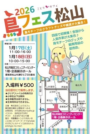1月17日(土)・18日(日)に、愛媛県松山市の松山市総合コミュニティセンター 1階 企画展示ホールにて、“鳥好きによる鳥好きのためのフェスタ” 第1回「鳥フェス松山2026」が開催される。
