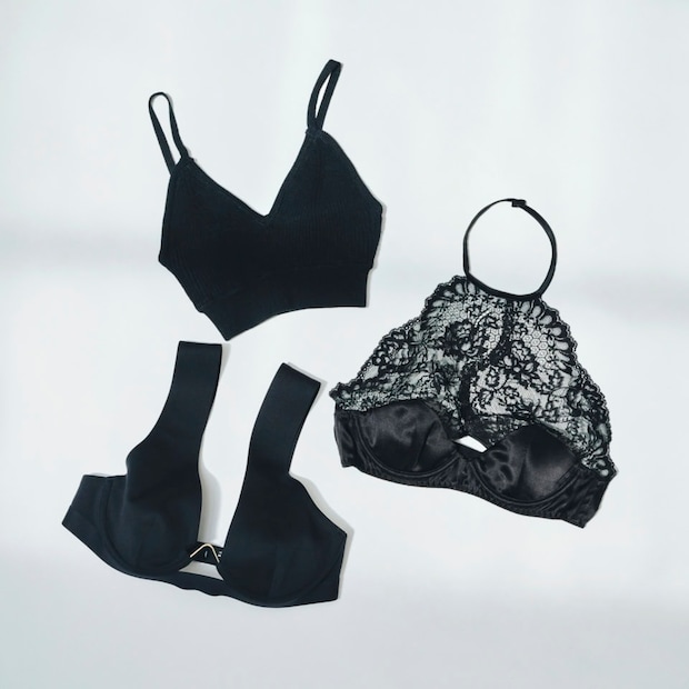 上から:ニットブラ¥7,000(トゥ)、ホルターネックブラ¥39,600(Chiyono Anne)、アンダーワイヤーブラ¥41,800(LIVY/GABRIELLE PECO)