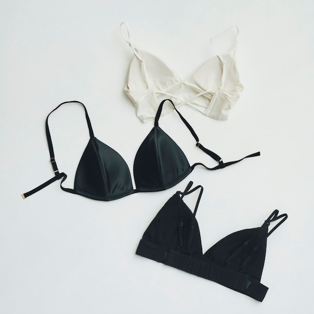 上から:バッククロスブラ¥6,820(アンダーソン アンダーソン)、ブラ¥22,000(MUR MUR/GABRIELLE PECO)、ダブルストラップブラ¥10,780(hazy tokyo/ビオラデザインワークス)
