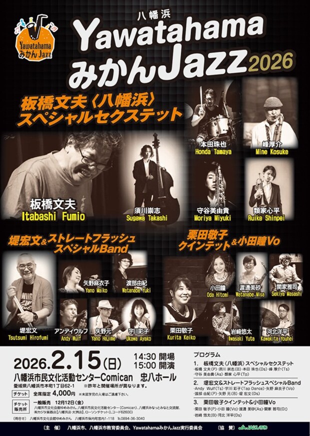 チケットは全席指定4,000円で、ゆめみかん、コミカン、みなと交流館、カジタ楽器店(八幡浜店・大洲店)、ローソンチケット(Lコード62600)にて販売されます。