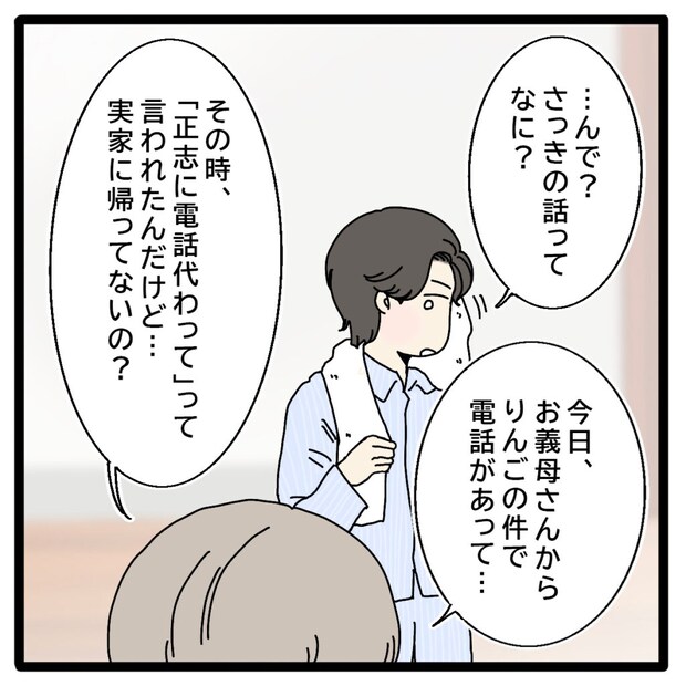 お風呂から出ると、正志はさっそく「話ってなに?」と聞いてきました。私は落ち着いて義母が「正志に電話代わって」と言ったことを伝えました。そして、実家に帰っていたのではなかったのかと聞きました。