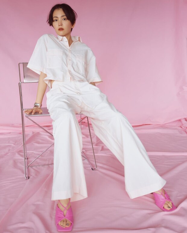シャツ¥15,950、パンツ¥19,910(共にNAVE × otona MUSE)、ブレスレットと靴はスタイリスト私物