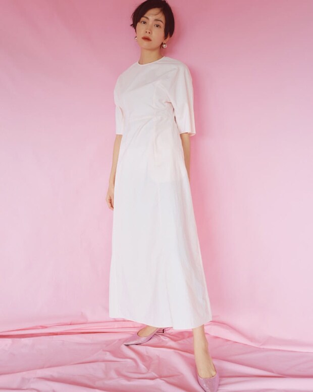 ドレス¥25,960(NAVE × otona MUSE)、ピアスと靴はスタイリスト私物