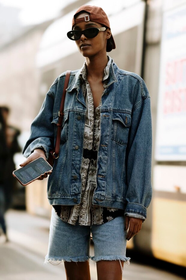 主役級のトップスには、ミニマムな形のサングラスを合わせるのが◎。ボクシーなシルエットのジャケットが主流だったけれど、どうやらネクストシーズンはからだのシェイプに沿うような、タイトめのタイプが人気を集める予感?