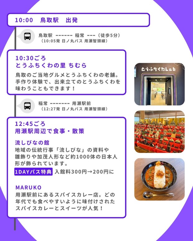 乗り放題パスで行く、鳥取東部プチ旅行の3モデルコース