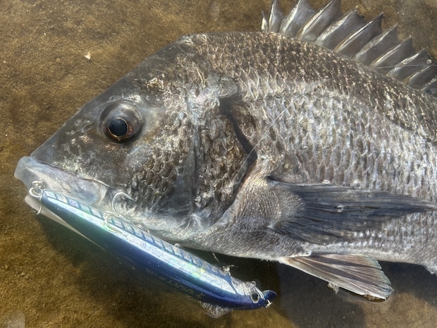 しかし、あくまでも今回の狙いはヒラスズキ。タックルを持ち換え、サラシがある磯へとポイントを移動しました。