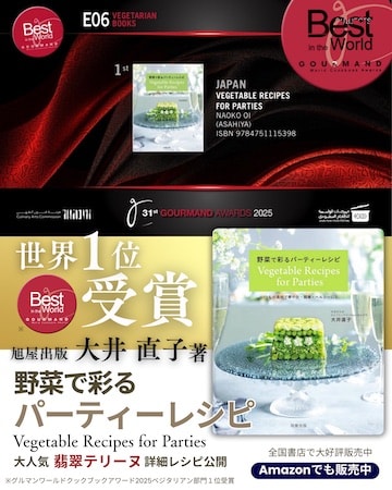 著者は福岡県在住の大井直子さん。初挑戦にして、世界221カ国・地域から集まった数多くの料理本の中から、日本の野菜料理の繊細な美しさと、誰もが再現できる実用性が評価された。