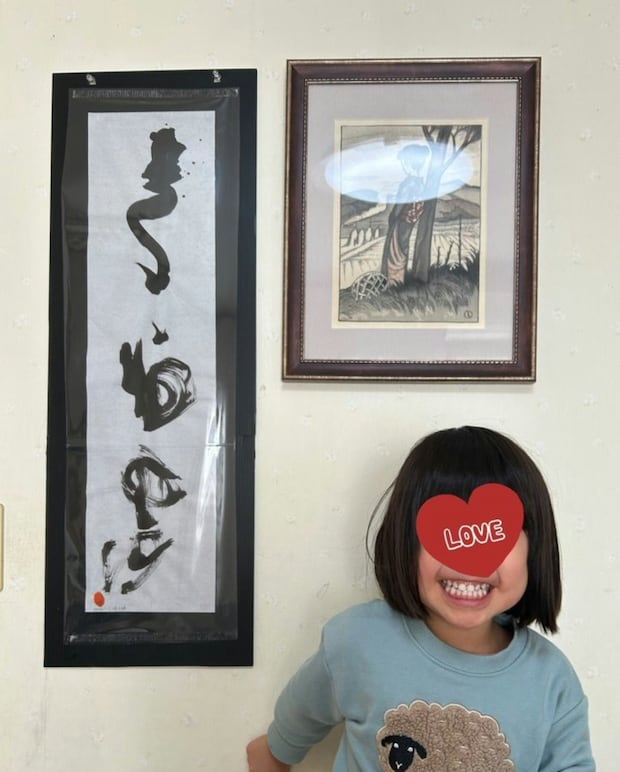投稿者・シロクマ☺︎(@sirokumata7)さんは、3歳の娘さんの書き初めがとても良かったと額に入れたそう。作品と共にカメラに収めた、娘さんの弾けるような笑顔に注目が集まりました。初めての書道体験での楽しさが伝わってくる一枚です!