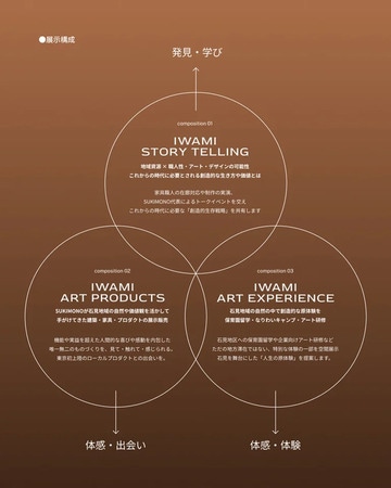 「IWAMI TRIBE with SUKIMONO」では、消費の価値観が大きく変化する時代に突入している中で、効率や実益だけを追い求めるのではなく、自らの手と身体・感情と誇りを起点に行う創造的なものづくりの観点から石見地域を再編集。