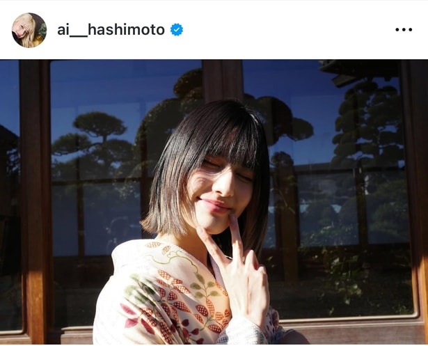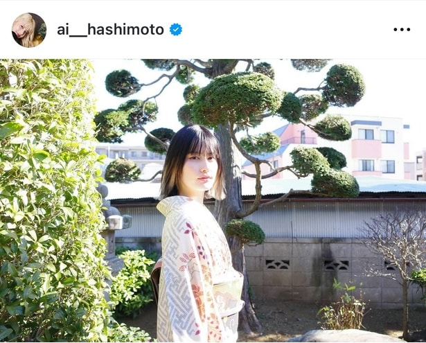 本投稿で公開された写真では、橋本は白を基調とした上品な着物を着用。トレードマークのボブヘアスタイルで、繊細な模様が施された着物に身を包んだ橋本からは、清廉かつどこかモードな印象が放たれる。