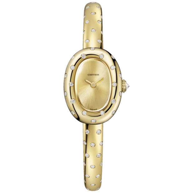時計〈べニュワール〉[YG×DIAH24.6×W18.7mm、クォーツムーブメント]¥3,828,000(カルティエ/カルティエ カスタマー サービスセンター)
