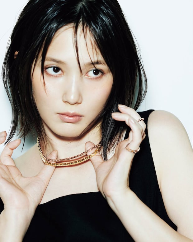 ゴールドとダイヤモンドをグラフィカルに配したモダンなデザイン。今季はピンクゴールドが新たに加わり、スタイリングの幅をさらに広げてくれそう。同じデザインでもどのゴールドカラーを選ぶかで表情は大きく変化! ネックレス上〈ル ダミエ ドゥ ルイ・ヴィトン〉[PG×DIA・39cm]¥5,522,000、ネックレス下〈ル ダミエ ドゥ ルイ・ヴィトン〉[YG×DIA・41cm]¥8,668,000、小指のリング〈ル ダミエ ドゥ ルイ・ヴィトン〉[PG×DIA]¥1,182,500、中指のリング〈ル ダミエ ドゥ ルイ・ヴィトン〉[PG×DIA]¥676,500(全てルイ・ヴィトン/ルイ・ヴィトン クライアントサービス)、トップス¥28,600(アモーメント)