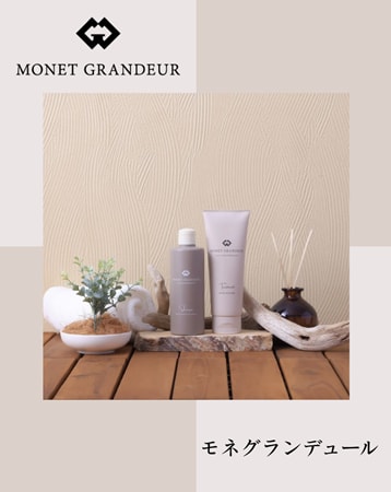 「モネグランデュール2点セット/36%オフ」は、通常7,700円相当のセットを4,950円(税込)で購入できる。内訳はシャンプー295ml、トリートメント250g。「市販品は物足りない」「ダメージ補修したい」という人から「何を選べばいいかわからない」初心者まで、幅広く選ばれている。
