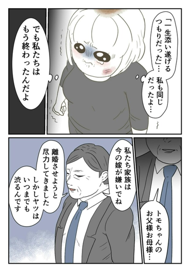 モトの今の妻と別れさせるため、家族ぐるみで尾持さんを騙していました…。常識では考えられないことをサラリと告白する彼の両親にも、異常さを感じずにはいられません。