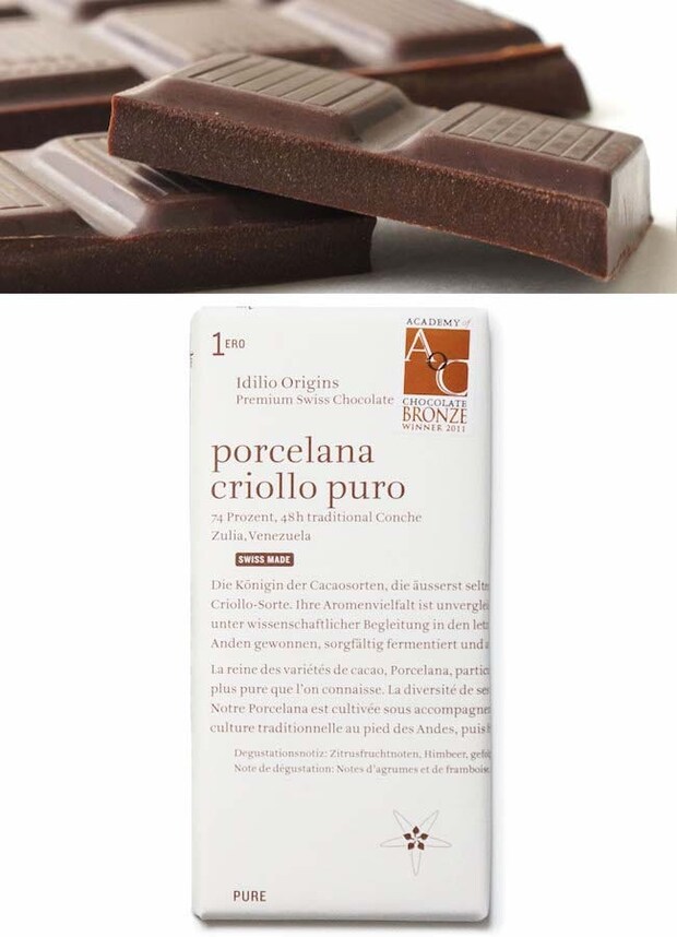 スイスの「イディリオ」はベネズエラ各地のカカオを使用した、シングルオリジンのタブレットを展開。「#1」(2,376円)はアンデス山麓で育てられた希少品種を使用